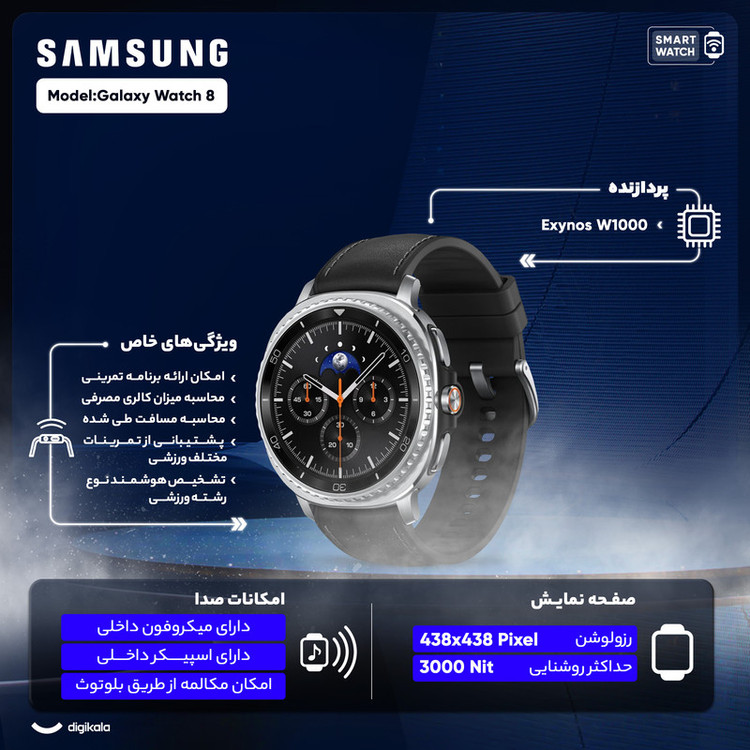 ساعت هوشمند 46 میلی‌متری سامسونگ مدل Galaxy Watch 8 Classic با بند چرمی