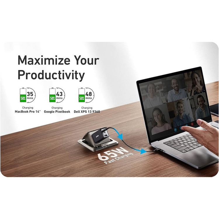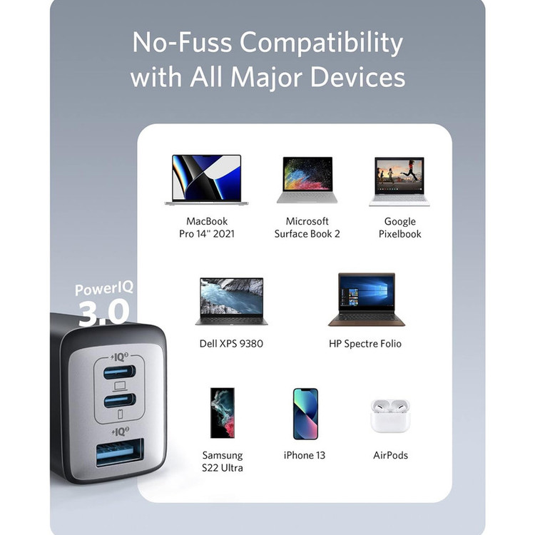 شارژر دیواری 65 وات انکر مدل 2667 Anker با یک خروجی USB و دو خروجی USB-C