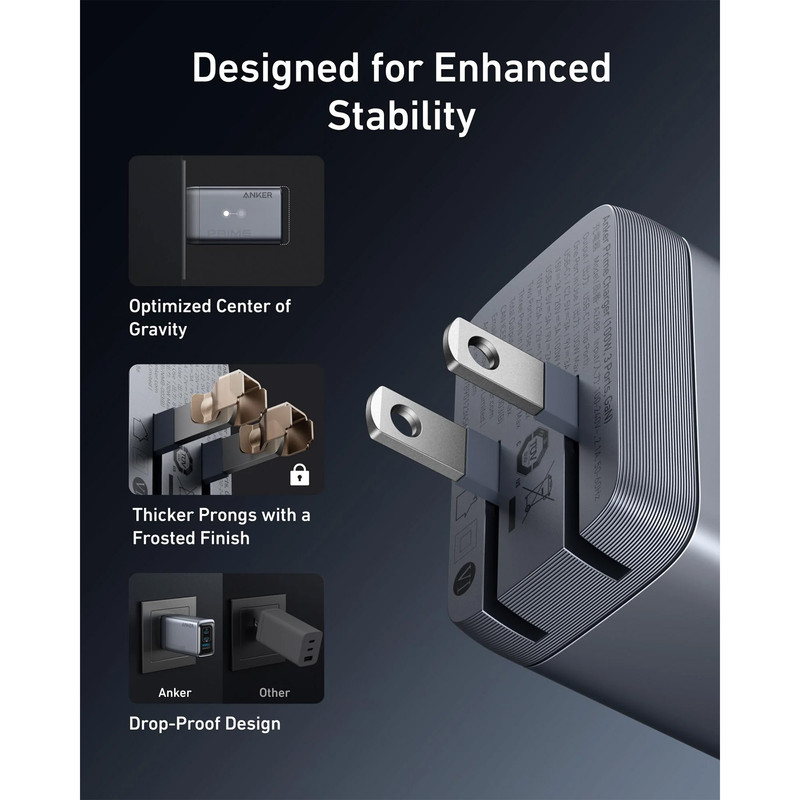 شارژر دیواری 100 وات انکر مدل 2688 Anker با یک خروجی USB و دو خروجی USB-C