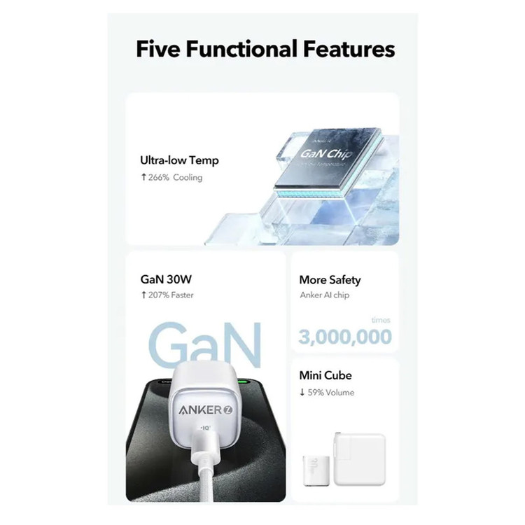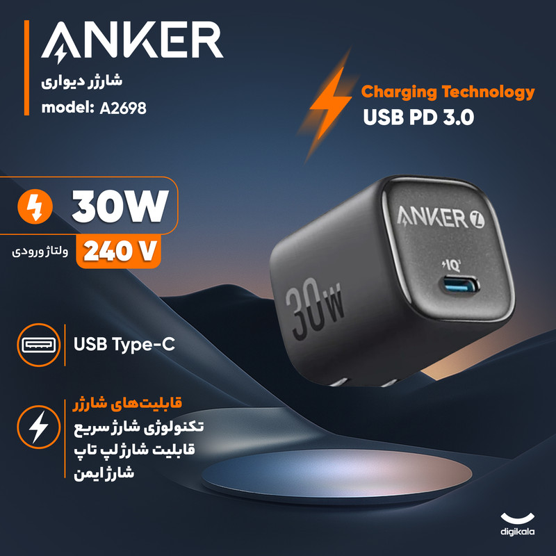 شارژر دیواری 30 وات انکر مدل Anker Zolo Charger 2698